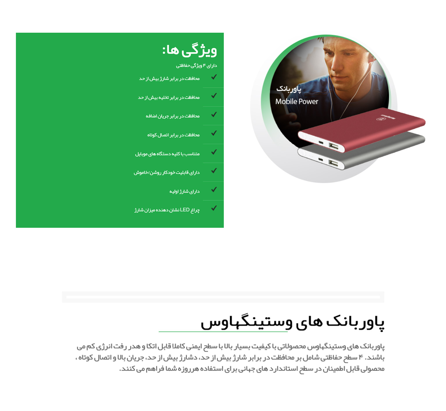 پاور بانک وستینگهاوس 4000 میلی آمپر مدل WH WP02: پاوربانک های وستینگهاوس محصولاتی با کیفیت بسیار بالا با سطح ایمنی کاملا قابل اتکا و هدر رفت انرژی کم می باشند. ۴ سطح حفاظتی شامل بر محافظت در برابر شارژ بیش از حد، دشارژ بیش از حد، جریان بالا و اتصال کوتاه ، محصولی قابل اطمینان در سطح استاندارد های جهانی برای استفاده هرروزه شما فراهم می کنند