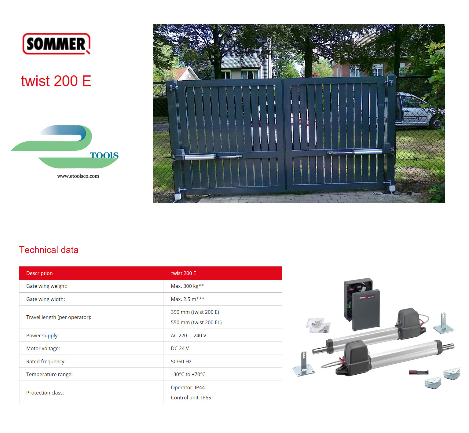 * twist200E مخصوص درب های تا هر لنگه به وزن 200 کیلوگرم و عرض هر لنگه حدود 130 سانتیمتر می باشد.