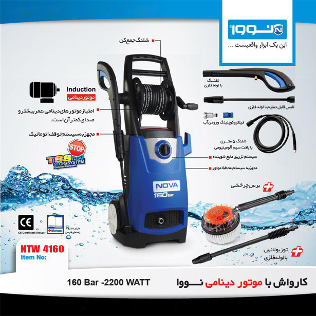کارواش 160 بار دینامی نووا NTW 4160: گروه نووا ماموریت خود را اینگونه قرار داده است تا ابزارهایی عرضه کند که با هر چالشی مقابله کنند. شما مکانیک هستید یا ساختمان ساز و یا نجار و برق کار، .... و یا تنها یک طرفدار ابزار، هر شغلی که دارید مطمئن باشید که در همه این موارد نـــووا مناسبترین ابزار برای شماست، نــووا ابزارهایی دارد که برای هرکاری قابل استفاده هستند.