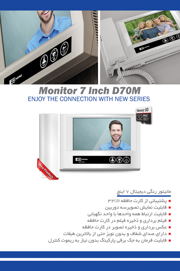 محصول جدید شرکت تک نما که به درخواست  مصرف کنندگان عزیز و با قابلیت پشتیبانی از کارت حافظه داخلی تا 32GB - امکان عکس برداری 1000 تصویر، فیلم برداری با کیفیت بسیار بالا و پشتیبانی از 3 دوربین مجزا را دارا می باشد با همت بلند مهندسین مجرب ایرانی تولید و عرضه می گردد در حال حاضر شرکت تک نما با محصولات جدید و به روز خود توجه همگان را جلب کرده و تنوع محصولاتش این امکان را به مشتری می دهد تا بهترین نوع درب بازکن تصویری را بر اساس سلایق و امکانات ویژه برگزیند.