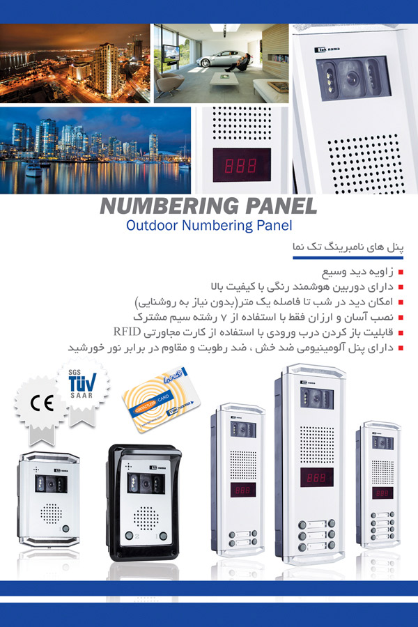 پنل کدینگ آیفون تصویری تک نما: صنایع الکترونیک تک نما در سال 1380 به منظور تولید در بازکن های صوتی و تصویری دیجیتال با توجه به نیاز جامعه ایرانی تشکیل گردید و محصولات خود را تحت نام تجاری تک نما به بازار مصرف ارائه نمود. طراحی این محصولات توسط مهندسین مجرب ایرانی صورت گرفته است و تمامی فرآیند تولید در این شرکت انجام می گیرد.